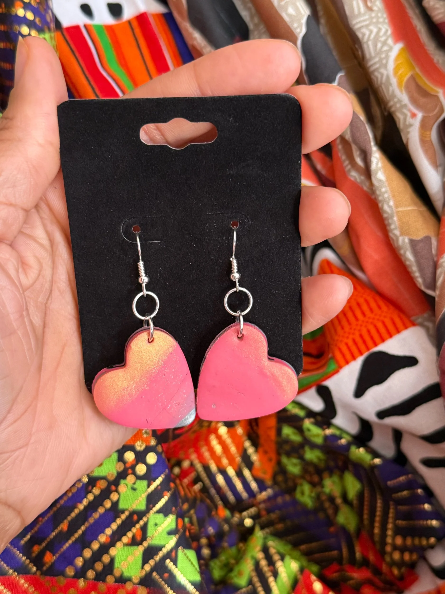Medium heart earrings. Each pair of our earrings are handcrafted with love. Material is polymer clay. Our earrings are unique and one of a kind.