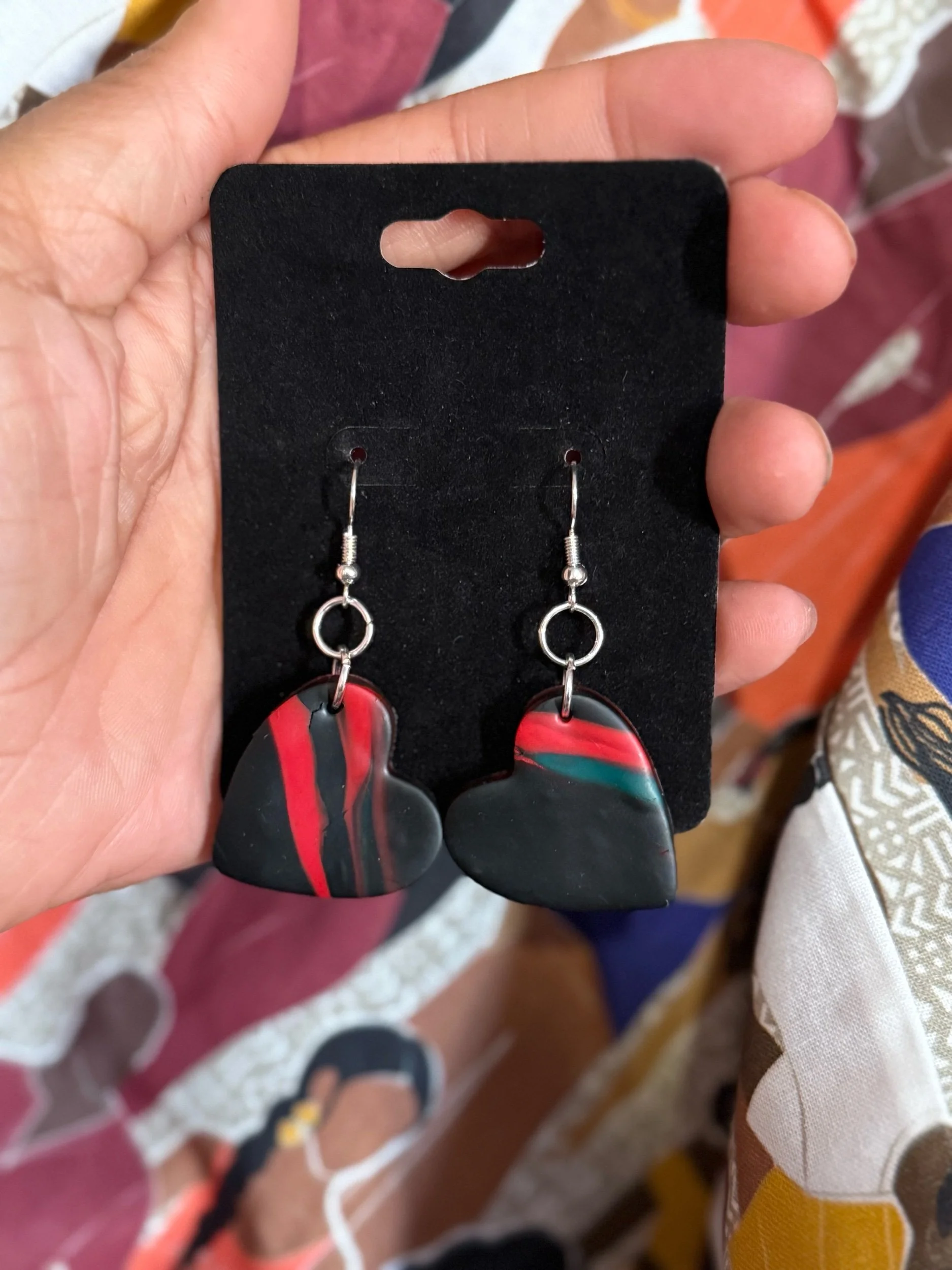 Medium heart earrings. Each pair of our earrings are handcrafted with love. Material is polymer clay. Our earrings are unique and one of a kind.